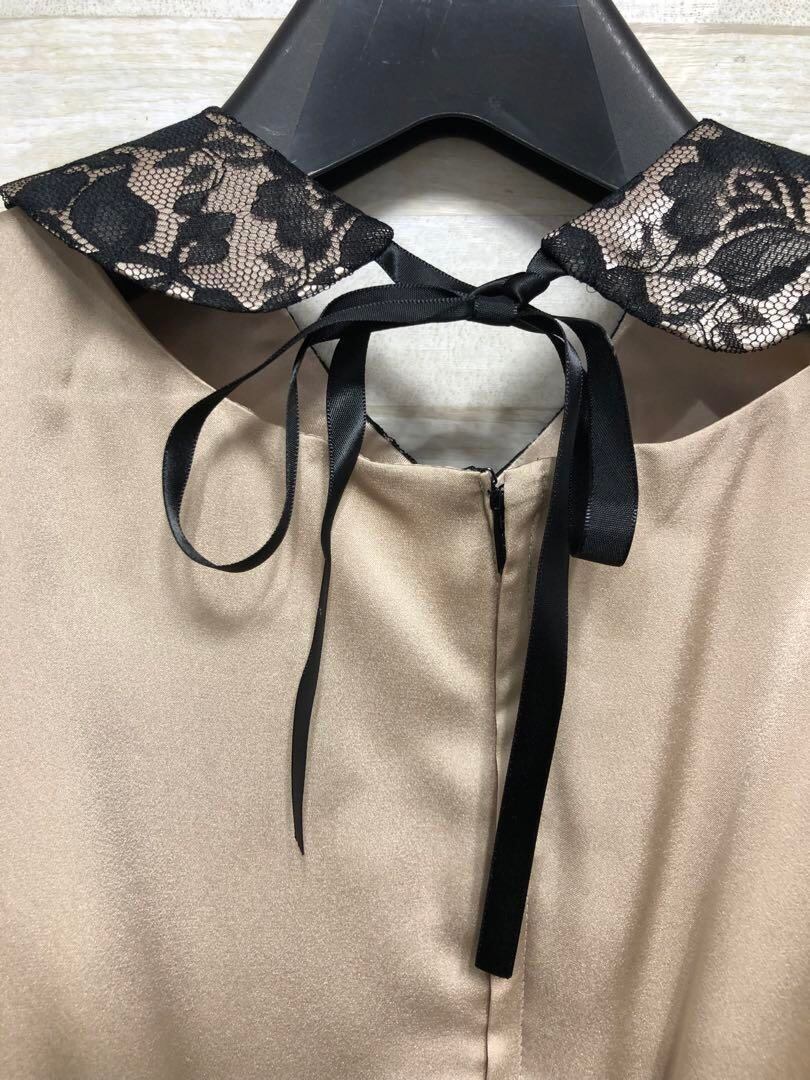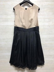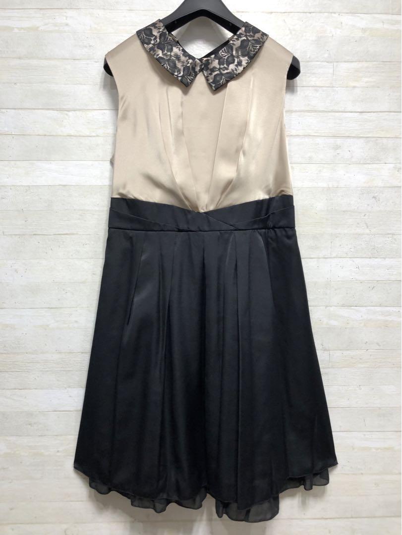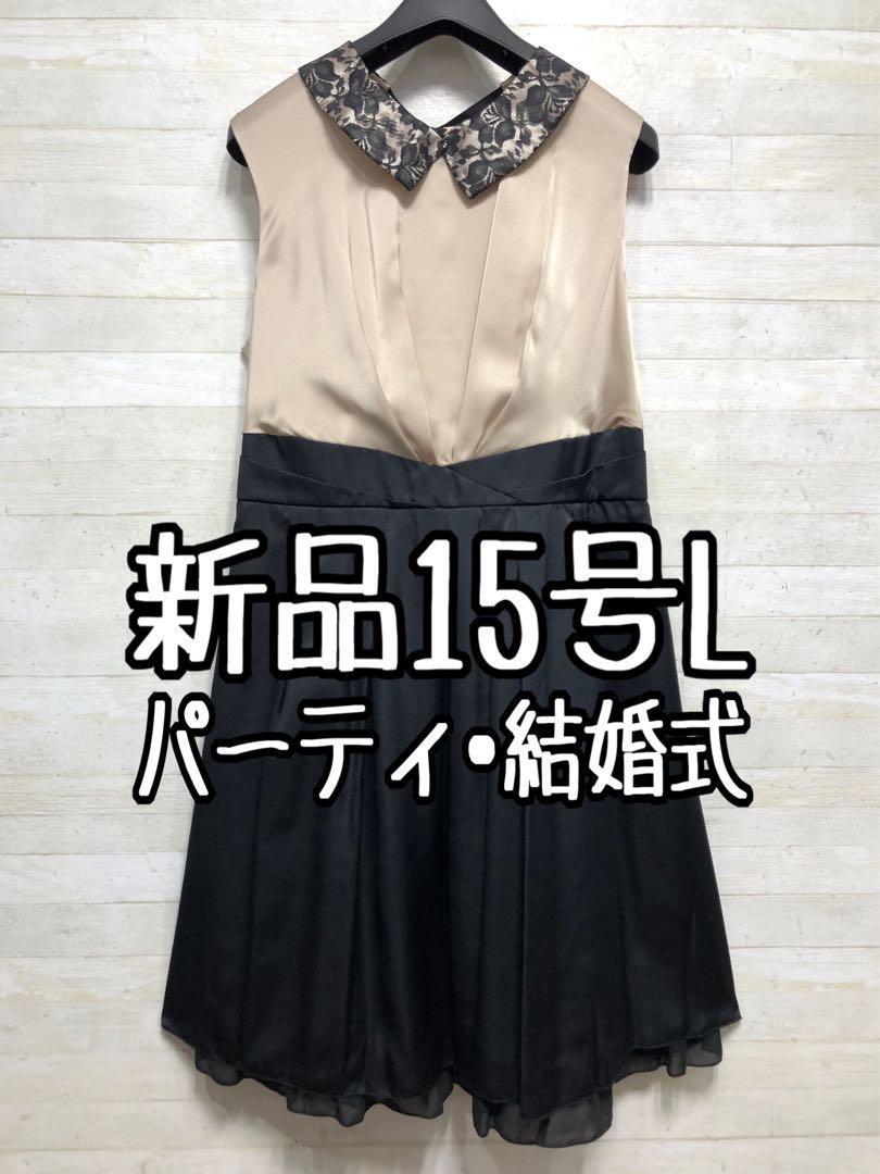 新品☆15号Lベージュ×黒系♪付け衿♪ステキなパーティワンピース〇G279