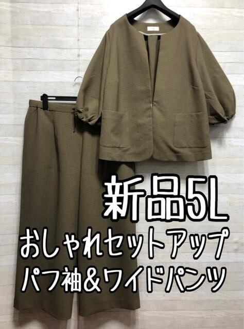 新品☆5L♪カーキ系♪うすかる♪おしゃれセットアップ♪ストレッチ〇G280