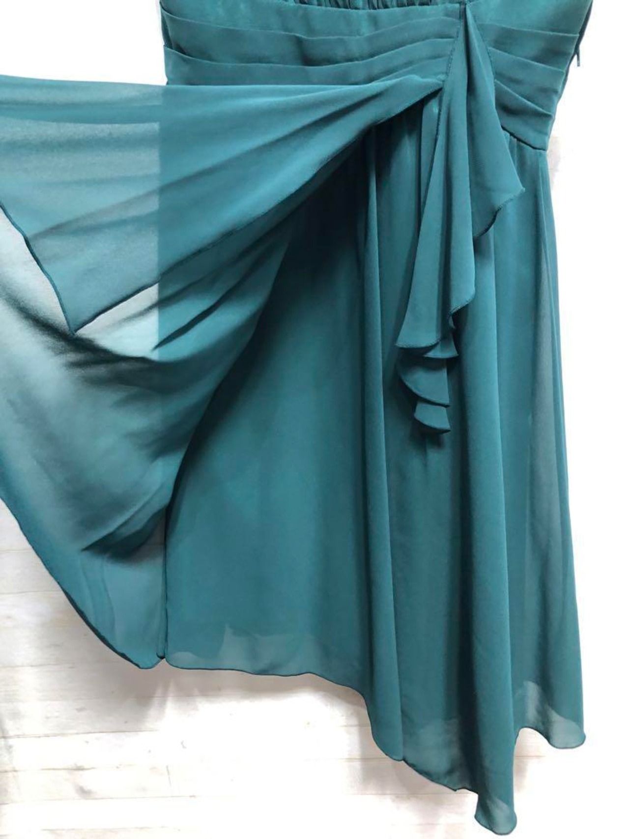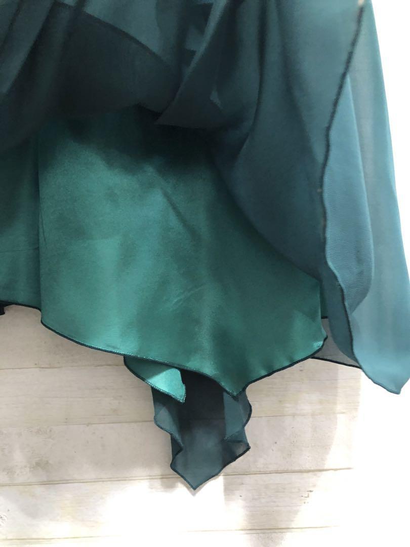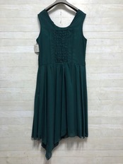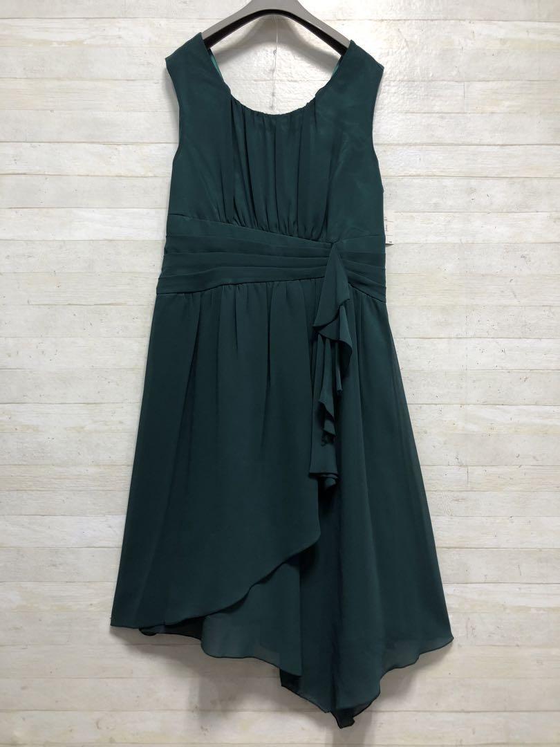 新品☆9号M♪緑系シフォン素材のパーティワンピース♪シックな印象〇G292