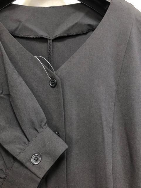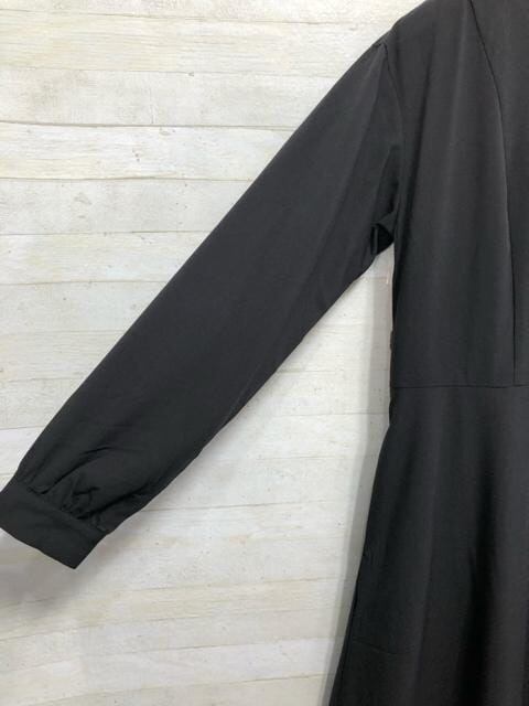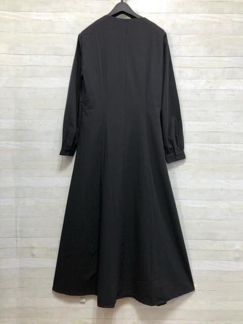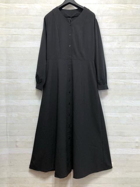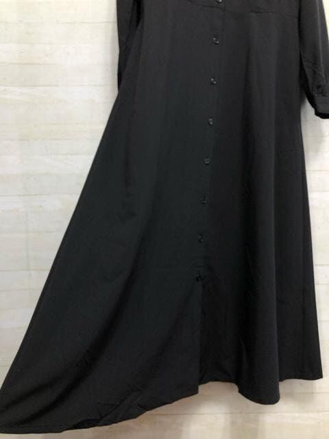 新品☆Lトール黒系無地フロントボタンのロングワンピース〇G293