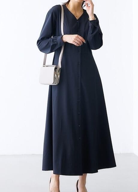 Vネックロングワンピース