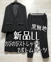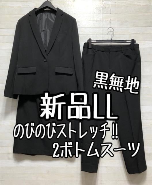 新品☆LL黒系無地ストレッチ素材2ボトムスーツお仕事・フォーマル・就活☆p638