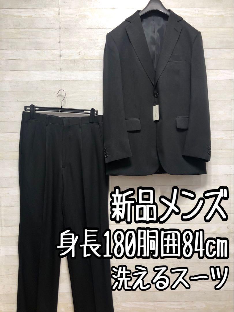 新品☆メンズ身長180ウエスト84黒系セットアップお仕事フォーマル〇G310
