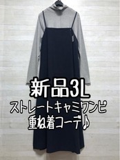 新品☆3L♪ハイネックリブカットソー&マキシ丈キャミワンピ♪重ね着セット〇D471