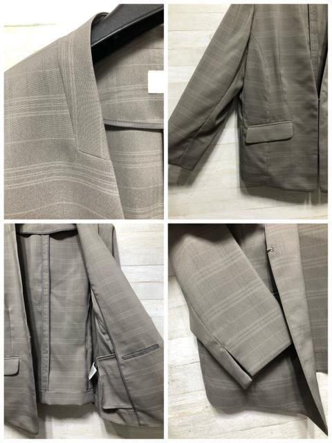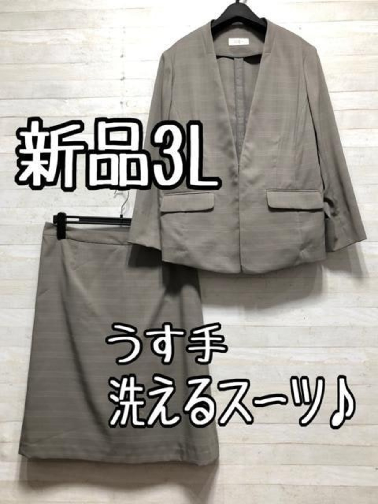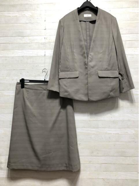 新品☆3Lグレー系チェック柄うす手スカートスーツ♪お仕事・通勤♪☆p656