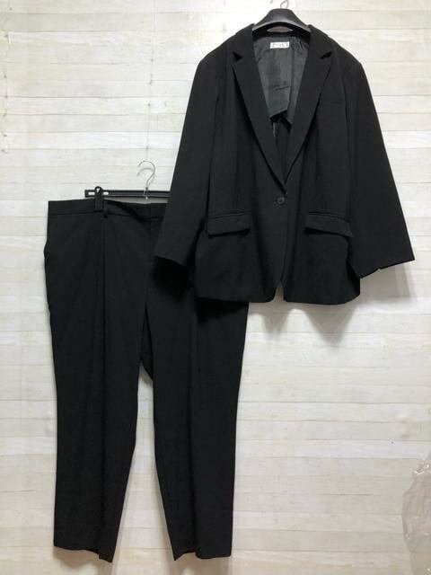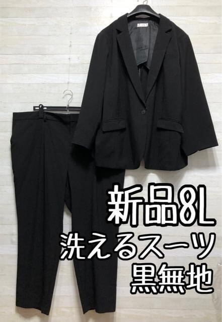 新品☆8L洗えるテーパードパンツスーツ黒無地お仕事フォーマル☆p659