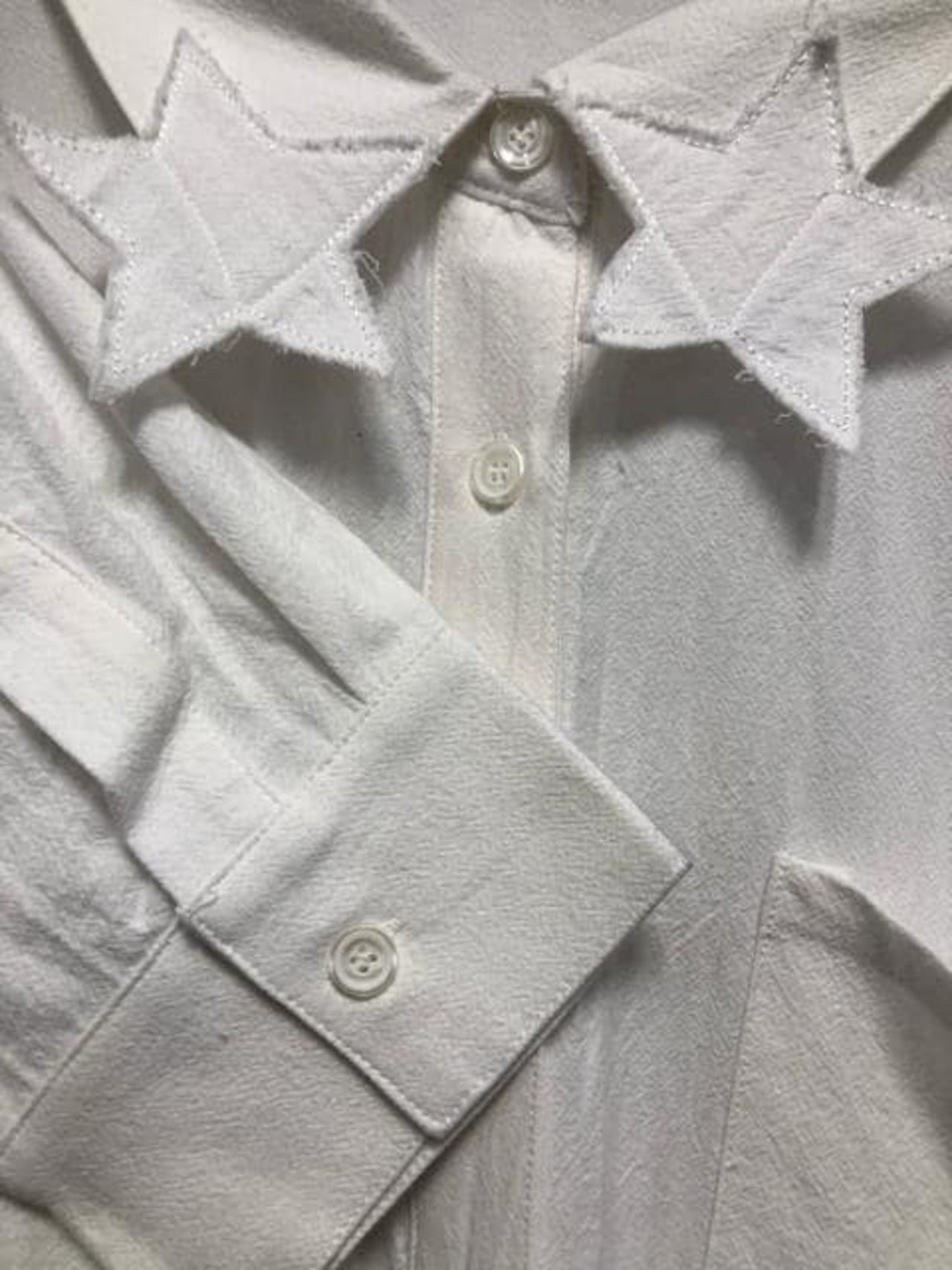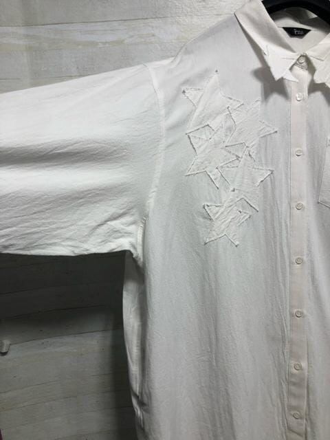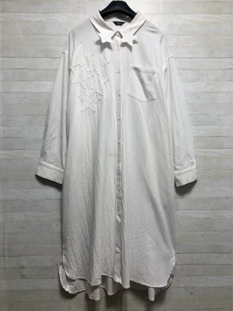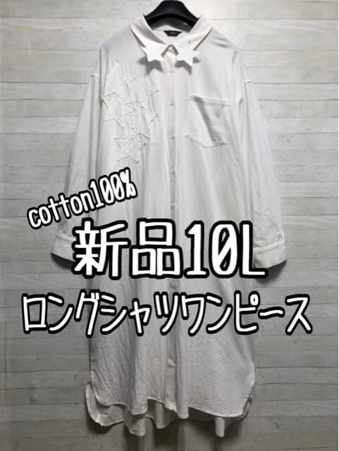 新品☆10L♪白系♪星柄モチーフのロングシャツワンピース♪綿100%♪〇D485