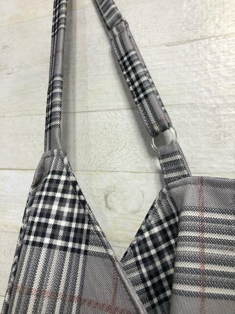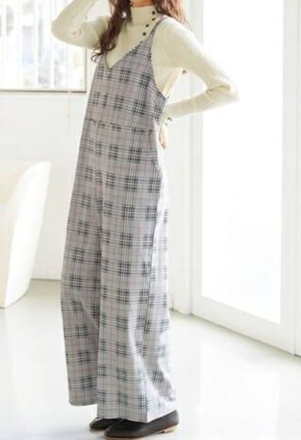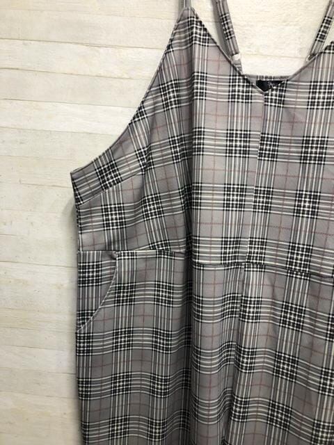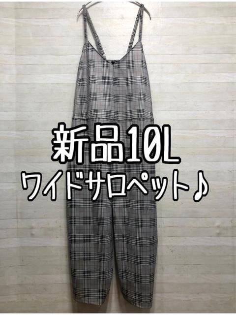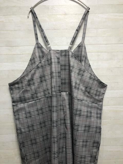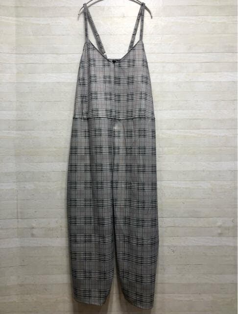 新品☆10Lグレー系チェック柄♪ワイドなサロペットパンツ〇G324