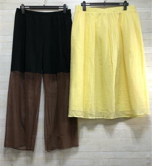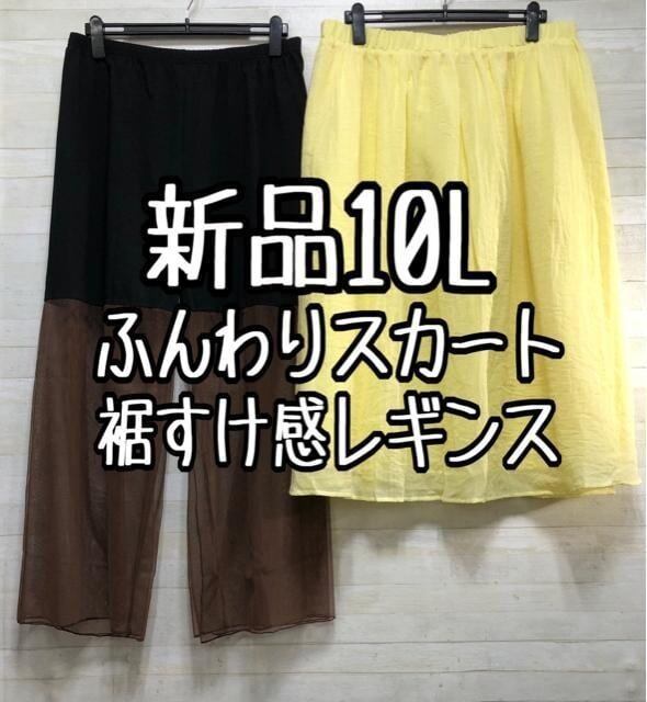 新品☆10L♪イエロー系ふんわりスカート&裾すけ感レギンス〇D482