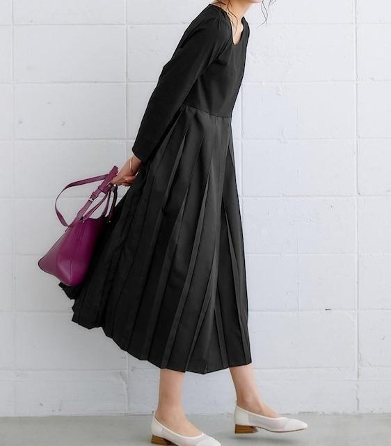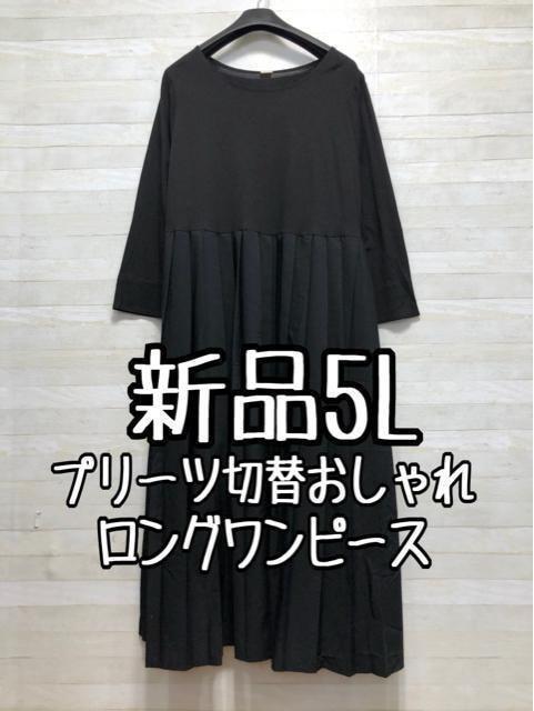 新品☆5L黒系♪プリーツ切替おしゃれロングワンピース☆x920