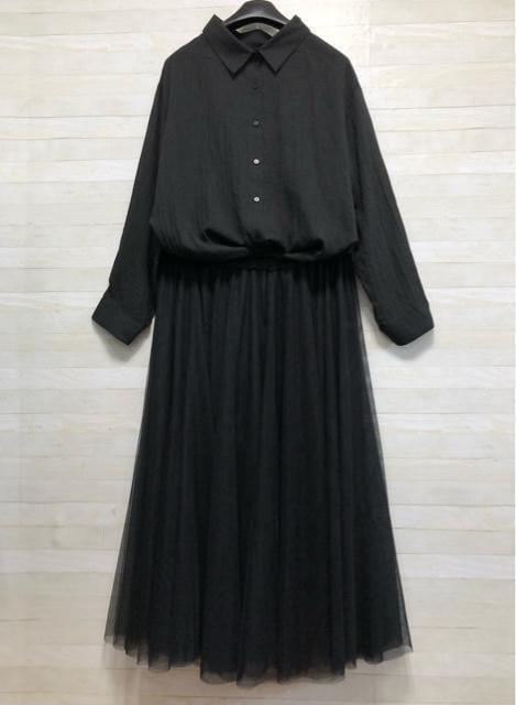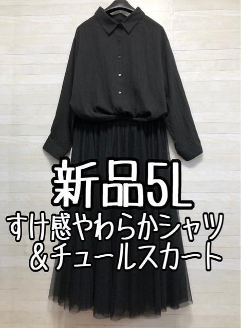 新品☆5L黒系♪やわらかシアーシャツ&チュールおしゃれロングスカート☆x940