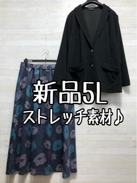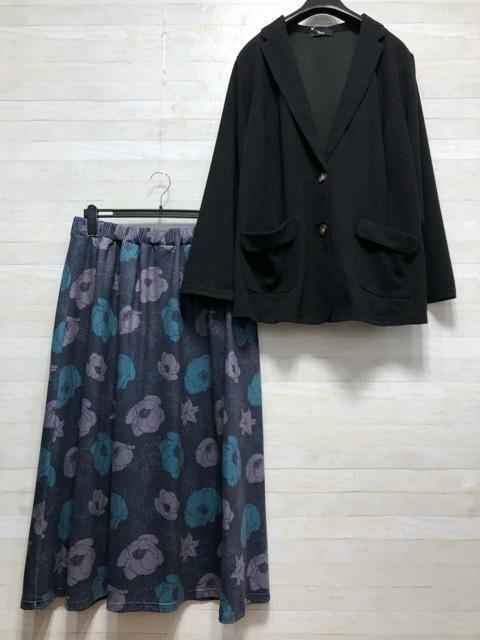 新品☆5L♪黒系無地ジャケット&花柄ロングスカート☆f535