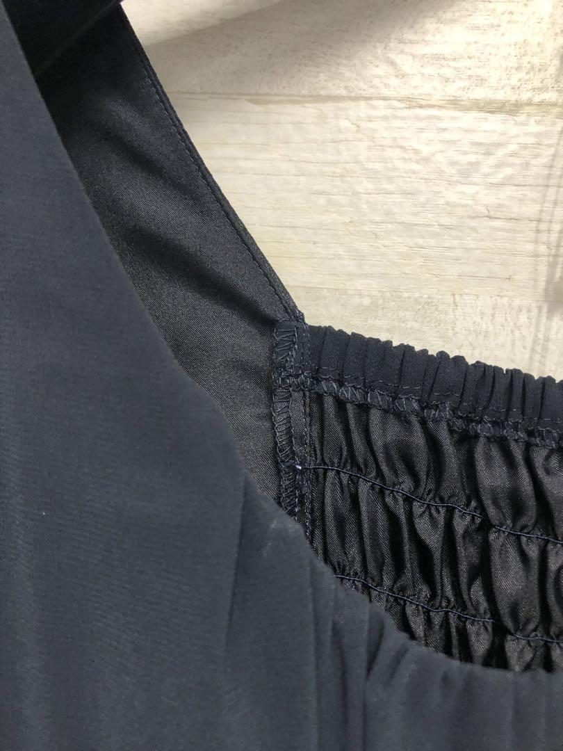 胸元のギャザーが縦ラインを強調