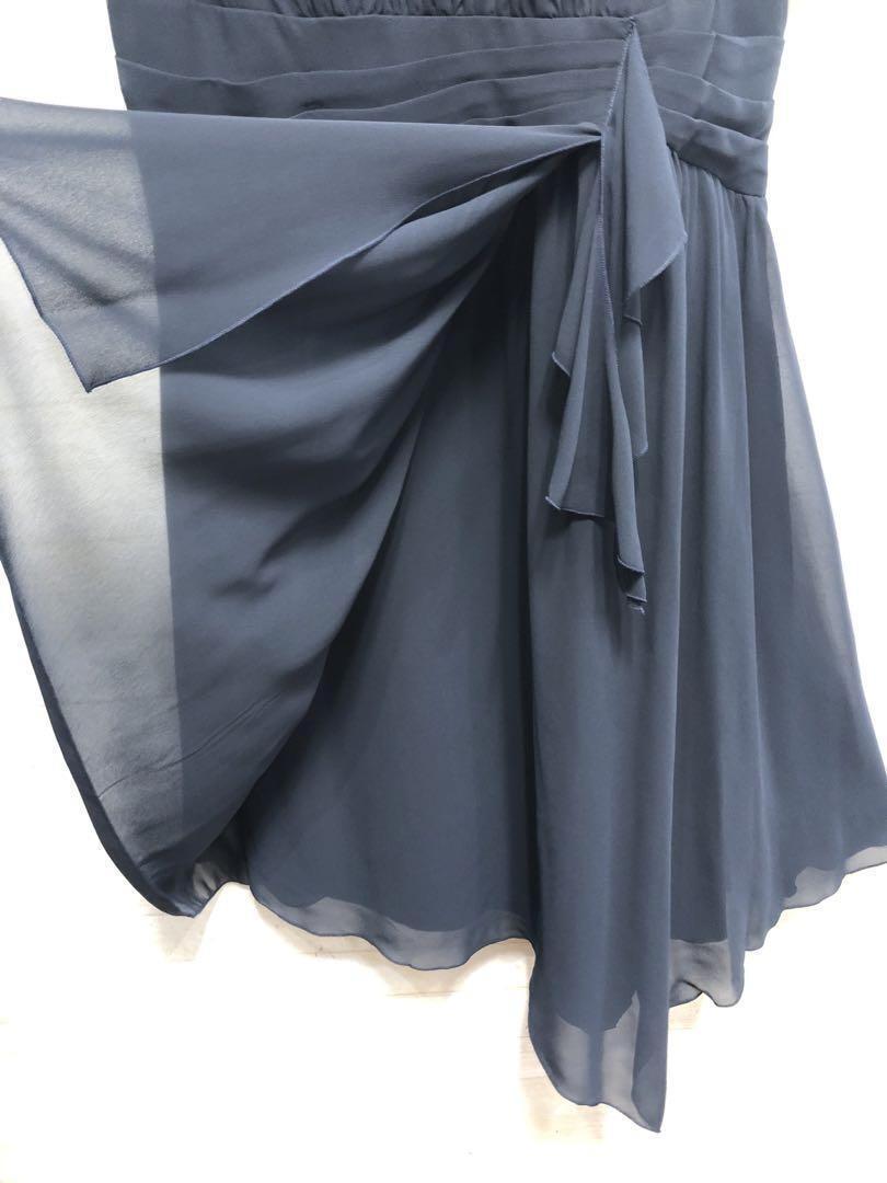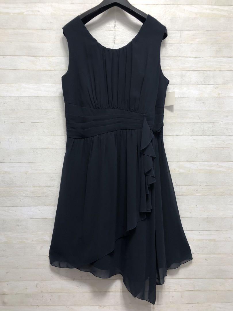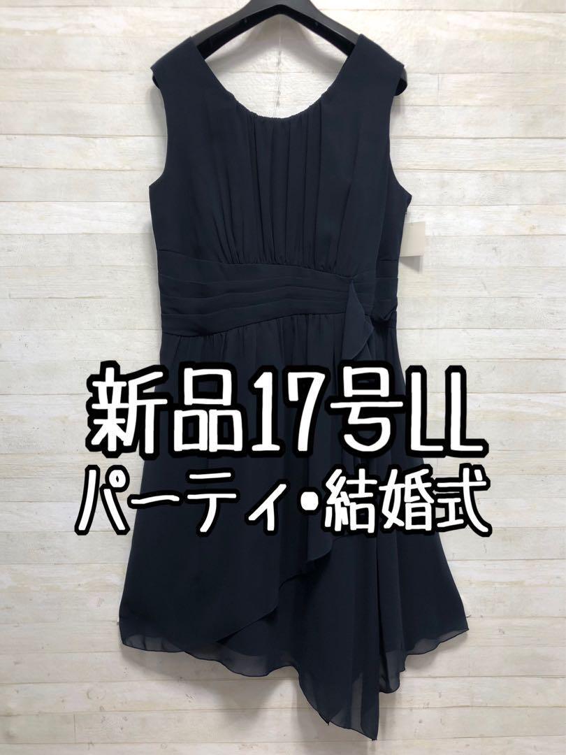 新品☆17号LL♪紺系のパーティワンピース♪シフォン素材♪謝恩会二次会〇G334