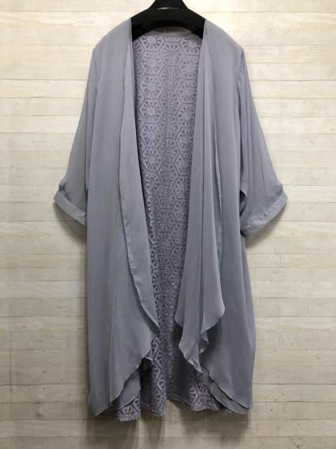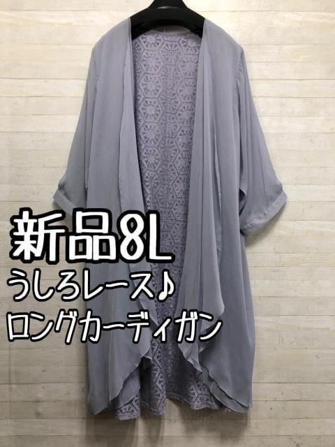 新品☆8Lくすみカラー♪透け感&レース上品トッパーカーディガン♪〇D495