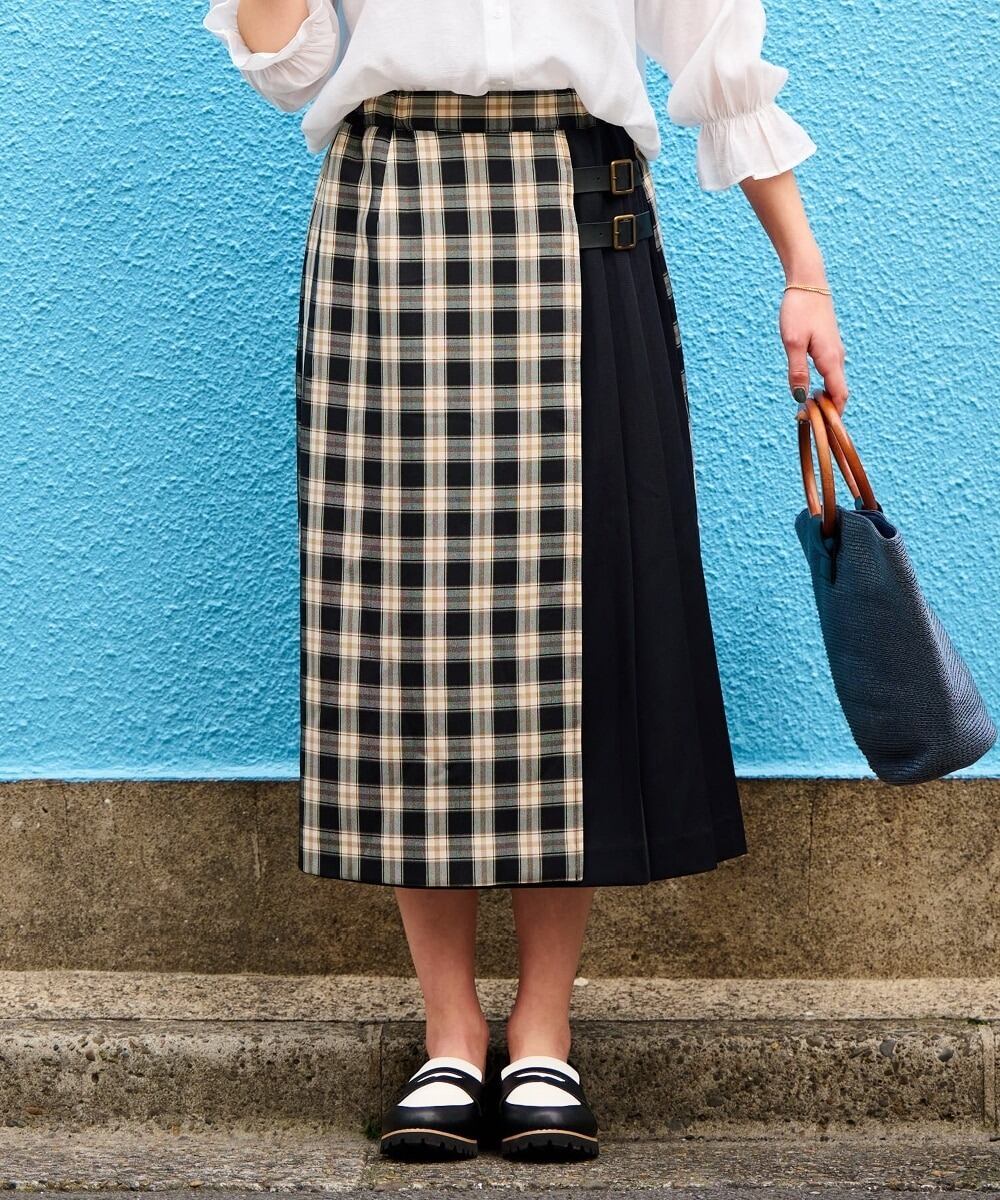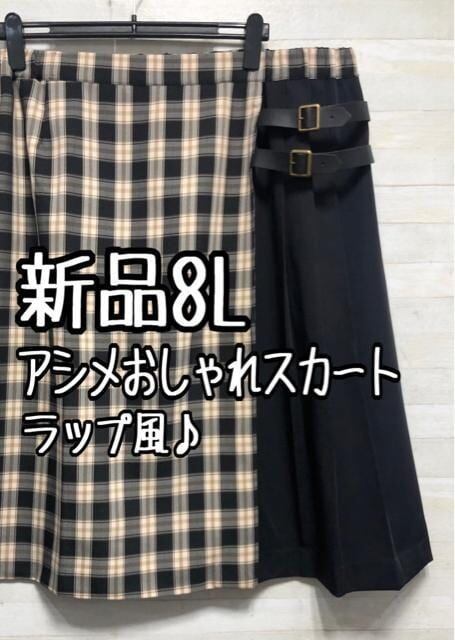 新品☆8L♪チェック柄♪アシメデザイン♪ラップ風スカート〇D505