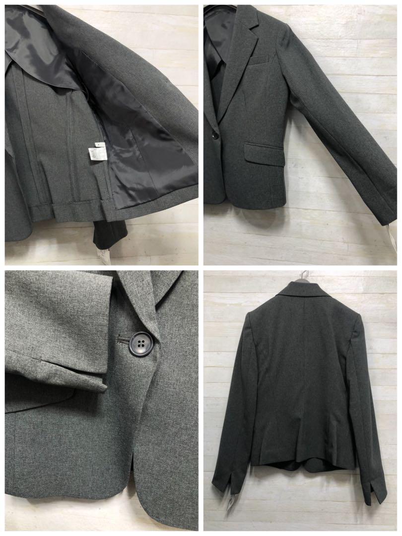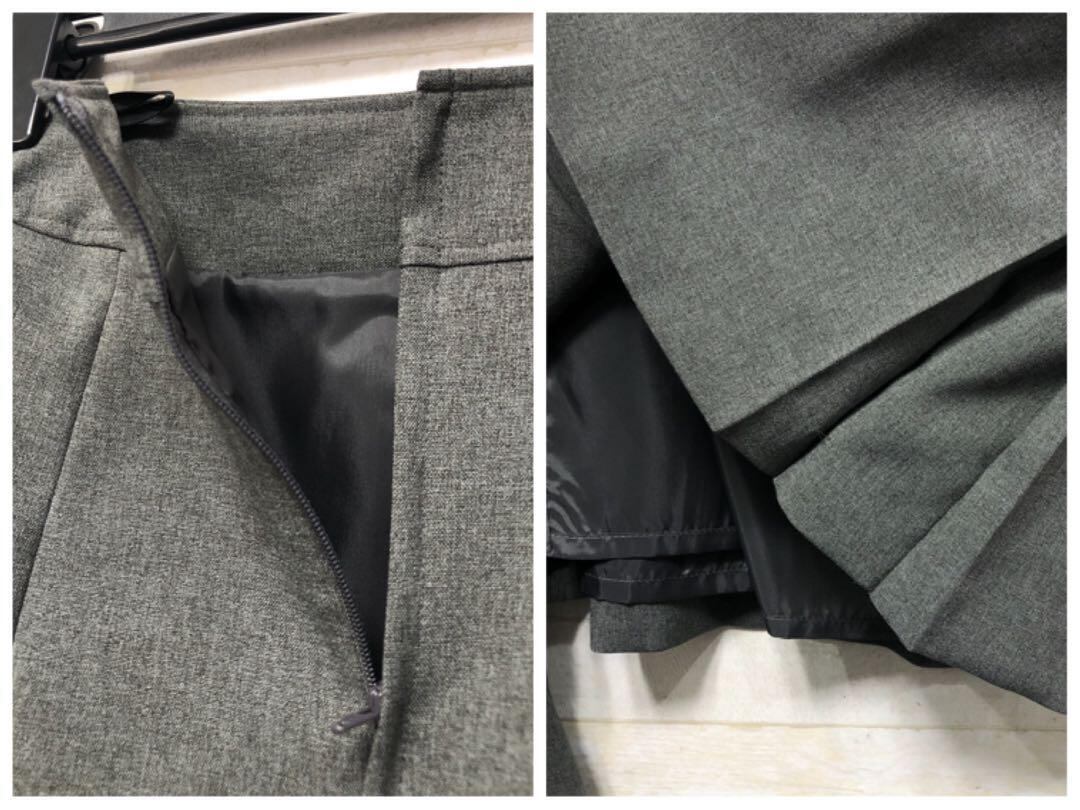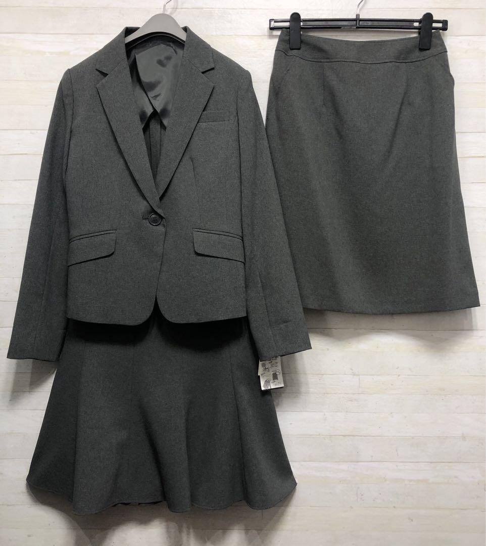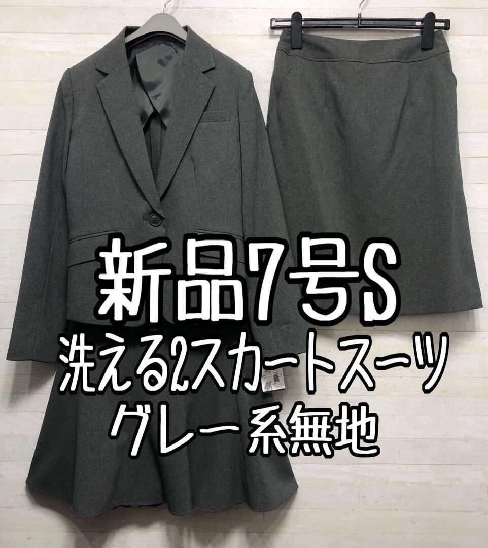 新品☆7号S♪洗えるグレー系無地2種スカート付きスーツ♪〇G345