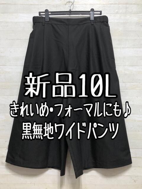 新品☆10L黒無地タック入♪おしゃれワイドパンツ〇D509