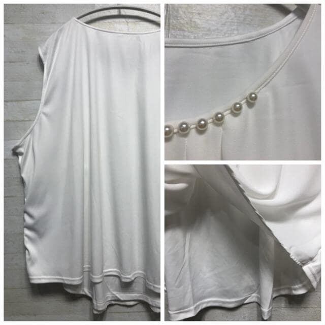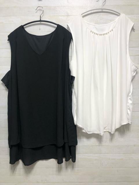 新品☆8L白×黒系♪スーツやジャケットに♪あたかもブラウス2種〇D513