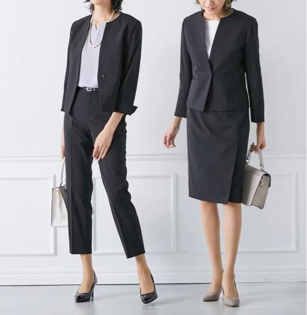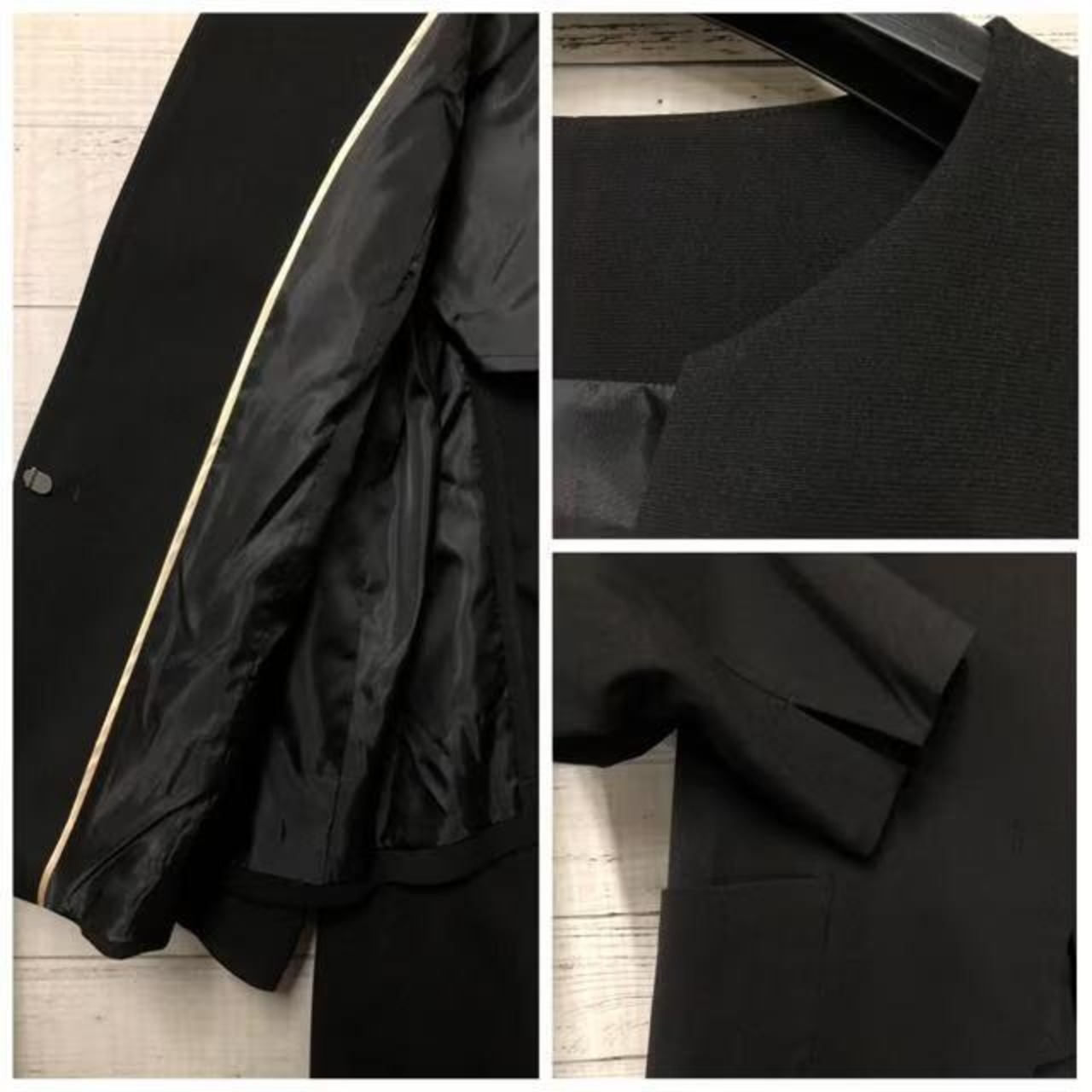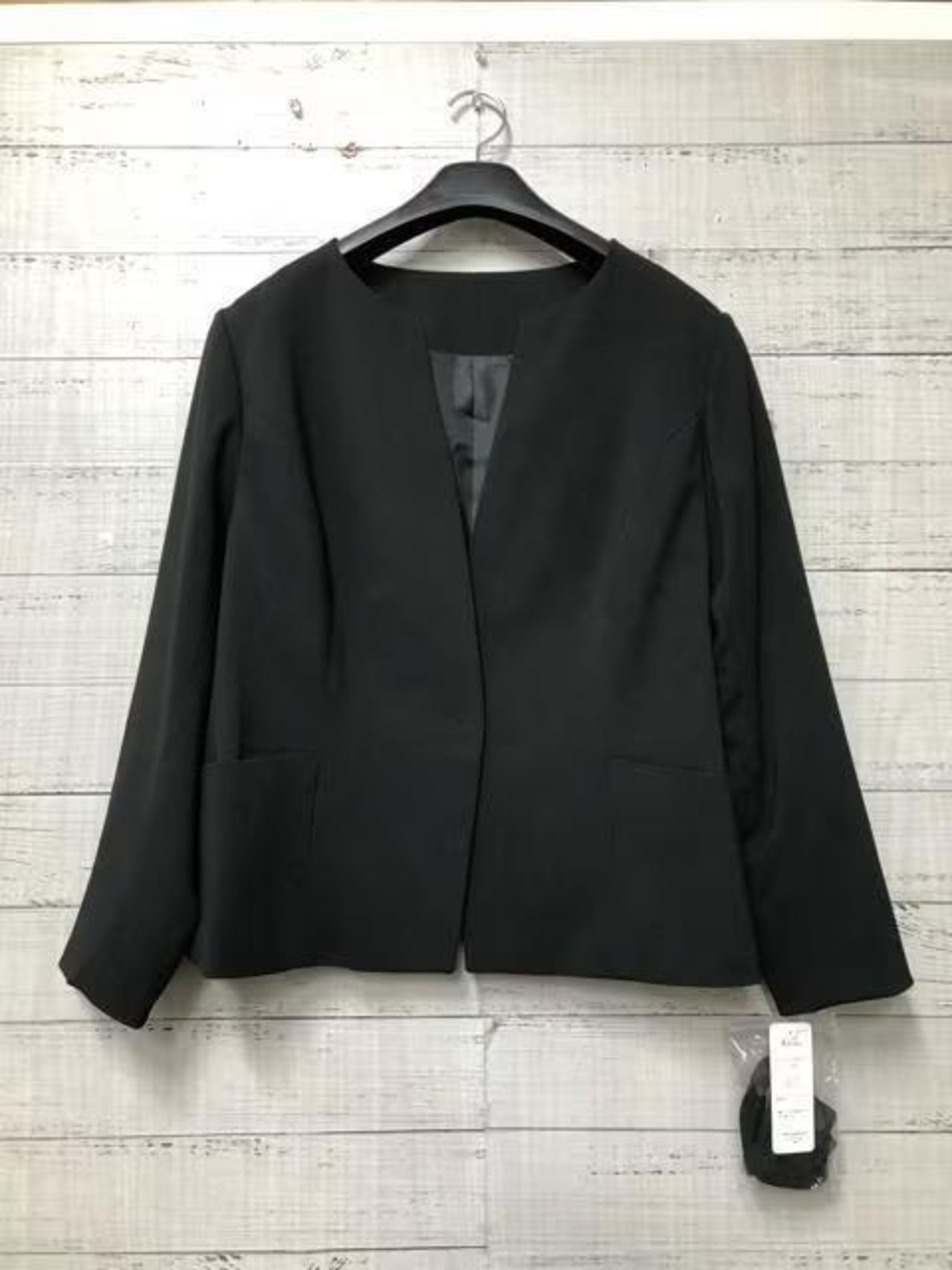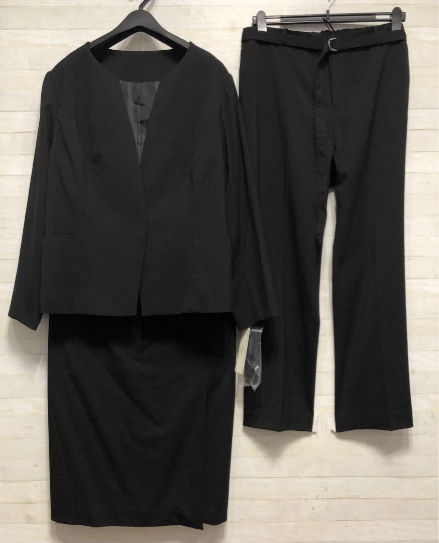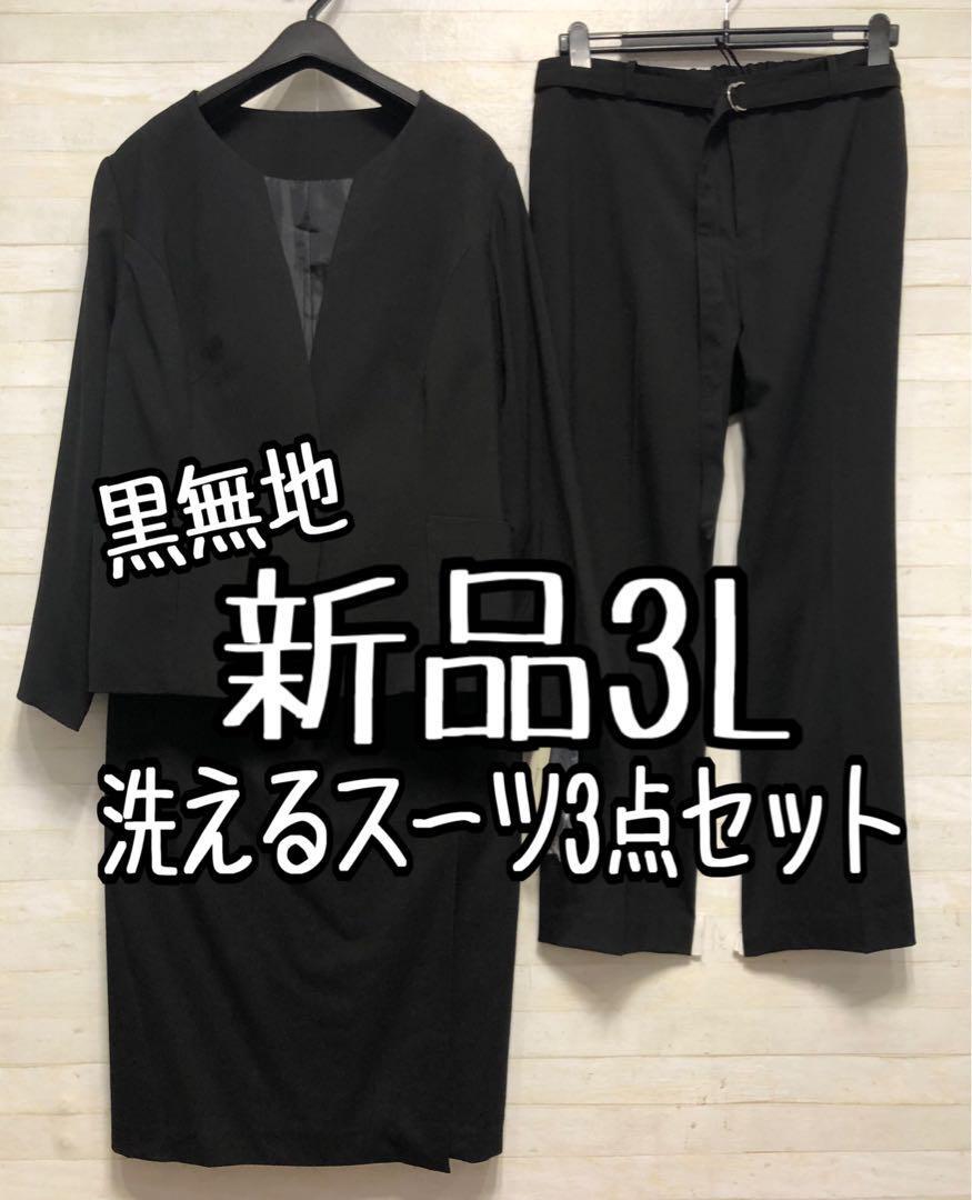 新品☆3L黒系スーツ3点セット♪ノーカラー・テーパードお仕事フォーマル◯G356