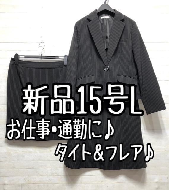 新品☆15号L黒系♪タイト&フレアスカート♪洗えるスーツ♪お仕事・通勤☆A250