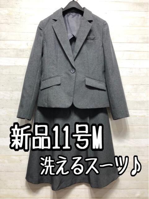 新品☆11号M♪グレー系♪フレアスカートスーツ♪お仕事・通勤☆A254