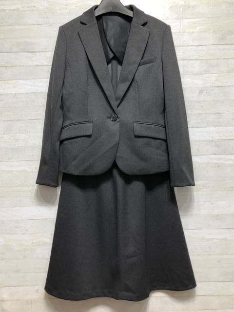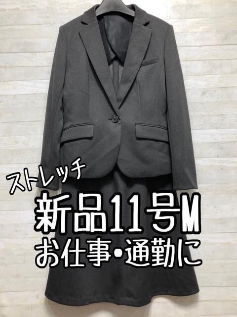新品☆11号Mグレー系♪ストレッチ素材♪洗えるスカートスーツ☆p671